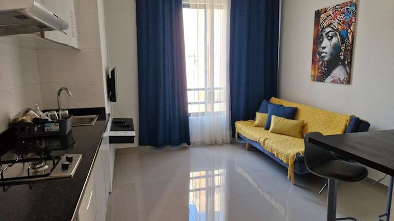Die Apartments sind mit einer voll ausgestatteten Küche ausgestattet, die über eine Mikrowelle, eine Kaffeemaschine, eine Herdplatte und einen Wasserkocher verfügt, um den Gästen die Zubereitung eigener Mahlzeiten zu ermöglichen.