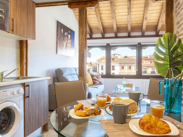 Die Apartamentos Ejemplares befinden sich in Alcalá de Henares, einer Stadt in der Nähe von Madrid. Die Lage ist ideal für Geschäftsreisende, da die Messe IFEMA nur 25 km entfernt ist. Auch Fußballfans werden die Nähe zum Stadion Santiago Bernabéu zu schätzen wissen, das nur 31 km entfernt liegt. In der Umgebung gibt es zahlreiche Restaurants, Geschäfte und Sehenswürdigkeiten. Das Museum Thyssen-Bornemisza und der Bahnhof Chamartin sind ebenfalls leicht erreichbar. Der Flughafen Madrid-Torrejón ist nur 6 km entfernt.
