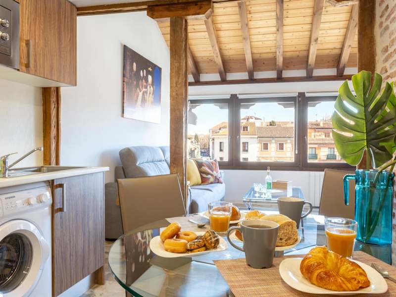 In den Apartamentos Ejemplares können Sie Ihre Mahlzeiten selbst zubereiten, da jede Unterkunft eine voll ausgestattete Küche hat. Alternativ können Sie in einem der nahe gelegenen Restaurants speisen und eine Vielzahl von kulinarischen Köstlichkeiten genießen. Von traditioneller spanischer Küche bis hin zu internationalen Spezialitäten ist für jeden Geschmack etwas dabei.