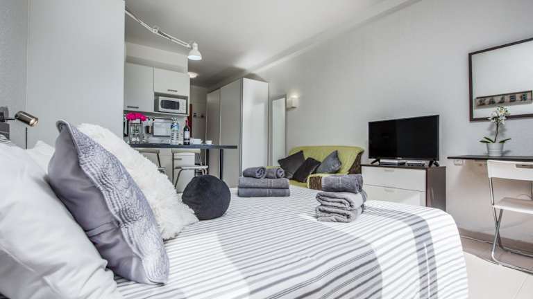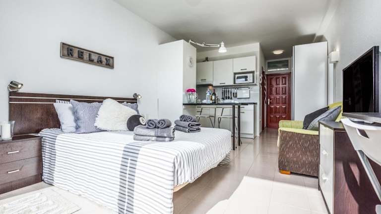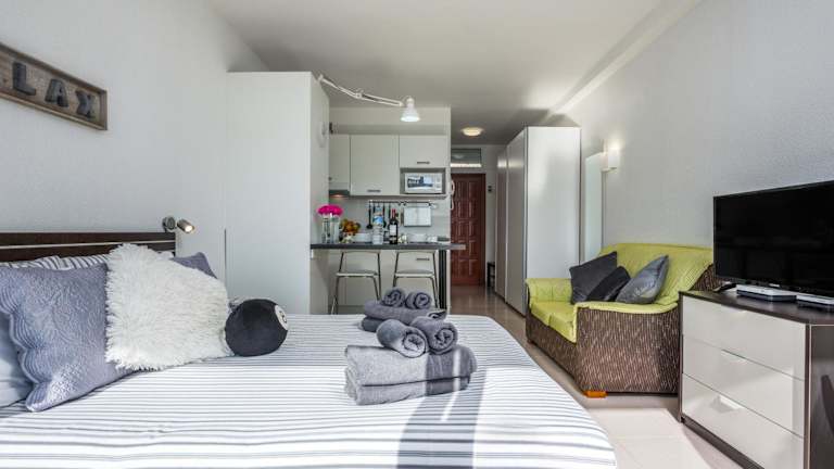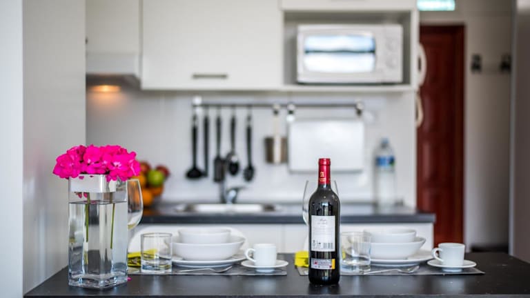 Die Apartments verfügen über eine Terrasse mit Stadtblick, einen Sitzbereich, einen Flachbild-TV und eine voll ausgestattete Küche. Zur Ausstattung gehören ein Kühlschrank, Mikrowelle, Herdplatte, Toaster, Kaffeemaschine, Wasserkocher sowie ein eigenes Badezimmer mit Dusche und Haartrockner.
