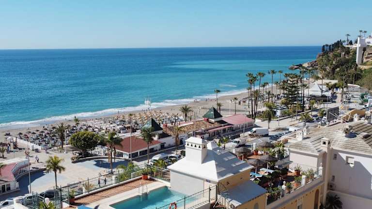 Die Apartments befinden sich in einem ruhigen Wohngebiet, nur 150 m vom Strand und etwa 5 Minuten vom Stadtzentrum von Nerja entfernt. Das Touristenzentrum von Cuevas de Nerja erreichen Sie nach ca. 3 km und der Flughafen Malaga ist etwa 57 km entfernt.