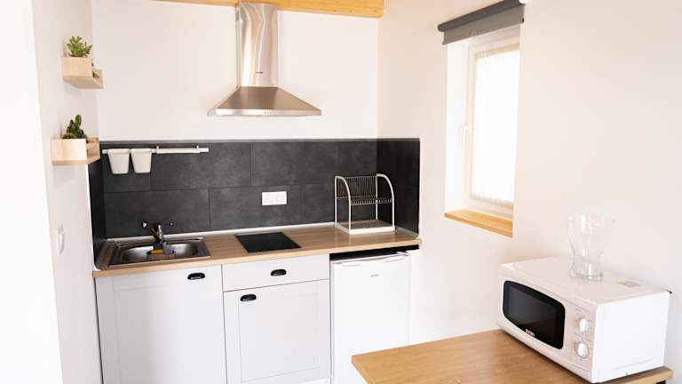 Die Unterkunft verfügt über eine voll ausgestattete Küche, die mit einem Kühlschrank, einer Mikrowelle, einer Herdplatte, einem Toaster sowie einer Kaffeemaschine ausgestattet ist. Ein Grill steht ebenfalls zur Verfügung, um im Freien zu kochen und zu genießen.