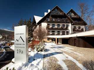 Das Panorama Gór Hotel bietet hochwertige Unterkünfte in einer ruhigen und grünen Umgebung in Szklarska Poręba. Die modernen Apartments verfügen über eine gut ausgestattete Küchenzeile und ein gemütliches Wohnzimmer mit Flachbild-TV. Die Lage des Hotels ist ideal, da der Bahnhof Szklarska Poręba Górna und das Skigebiet Szrenica nur 1,5 km entfernt sind.