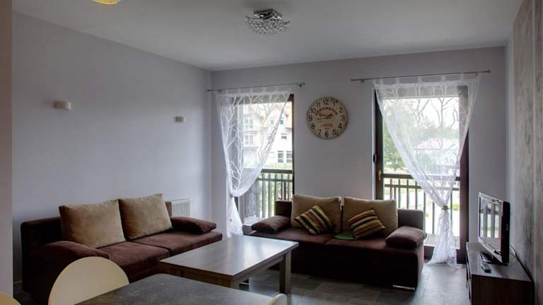 Die Apartments im Panorama Gór Hotel sind modern eingerichtet und bieten Ihnen eine komfortable und gemütliche Unterkunft. Jedes Apartment verfügt über eine gut ausgestattete Küchenzeile mit einem Essbereich, in dem Sie Ihre eigenen Mahlzeiten zubereiten können. Das Wohnzimmer ist mit einem Flachbild-TV und einer Sitzecke ausgestattet, in der Sie sich entspannen können. Das Bad verfügt über eine Dusche und einen Haartrockner, und für zusätzlichen Komfort stehen eine Waschmaschine und ein Bügeleisen/-brett zur Verfügung. Auf Anfrage sind auch Ausstattungen für Babys wie eine Babywanne oder ein Babyfon erhältlich.