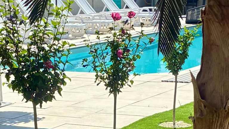 Die klimatisierten Wohneinheiten sind mit Fliesenböden ausgestattet und umfassen ein eigenes Badezimmer mit Dusche und Haartrockner. Zu den weiteren Annehmlichkeiten zählen ein Flachbild-TV, ein Kleiderschrank, eine ausgestattete Küchenzeile sowie eine Terrasse mit Blick auf den Pool.