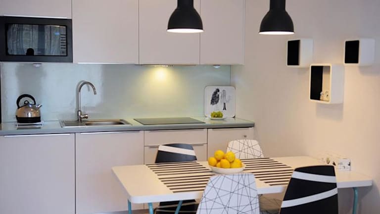 Die Apartments verfügen über eine voll ausgestattete Küchenzeile, die mit einem Kühlschrank, Geschirrspüler, Herdplatte, Kaffeemaschine und Wasserkocher ausgestattet ist, um die Gäste bei der Selbstversorgung zu unterstützen.