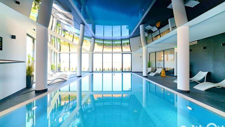 Die Unterkunft bietet einen Innenpool, einen Whirlpool sowie Zugang zu einem eigenen Strandbereich. Für sportliche Betätigungen gibt es zudem einen Fitnessbereich.