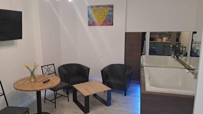Die Zimmer im Apartamenty Centrum z wanną dwuosobową sind gemütlich und komfortabel eingerichtet. Jedes Zimmer verfügt über einen Flachbild-TV und ein eigenes Badezimmer mit Dusche, Badewanne und kostenlosen Pflegeprodukten. Die Küchenzeile ist mit einem Kühlschrank und einer Mikrowelle ausgestattet, so dass Sie Ihre eigenen Mahlzeiten zubereiten können. Einige Zimmer bieten auch einen separaten Sitzbereich und einen Balkon, der einen schönen Blick auf die Umgebung bietet.