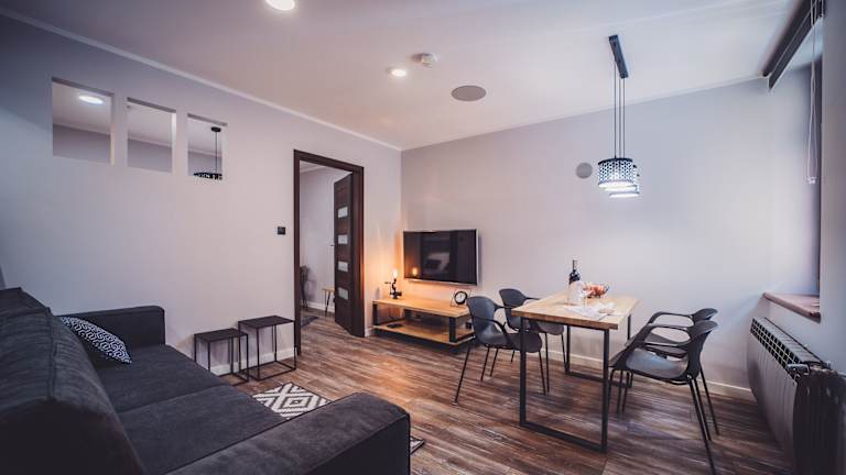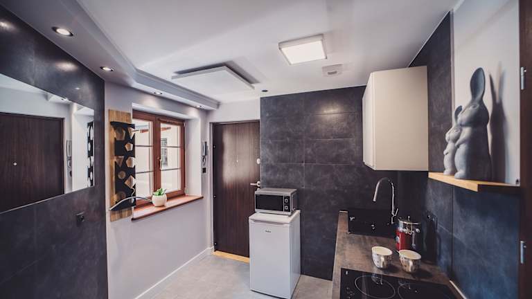 Die Unterkünfte im Apartamenty Europa sind komfortabel und bieten alles, was Sie für einen angenehmen Aufenthalt benötigen. Jedes Apartment verfügt über einen Flachbild-TV und eine voll ausgestattete Küche mit Mikrowelle, Kühlschrank, Kochfeld und Wasserkocher. Das eigene Badezimmer ist mit einer Badewanne oder Dusche und kostenfreien Pflegeprodukten ausgestattet. Handtücher werden gestellt und einige Fenster bieten eine herrliche Aussicht auf die Sehenswürdigkeiten der Stadt.