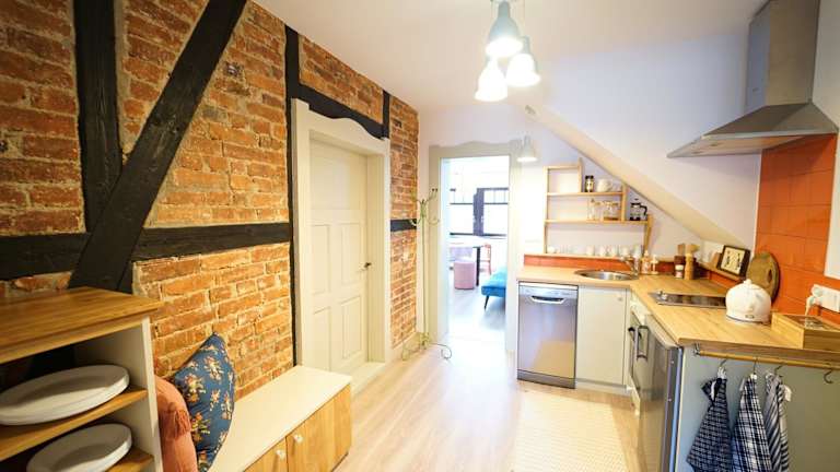 Die Unterkunft verfügt über eine voll ausgestattete Küchenzeile, die mit einem Kühlschrank, einer Herdplatte und einem Wasserkocher ausgestattet ist. Es sind keine spezifischen Verpflegungsmöglichkeiten angegeben.