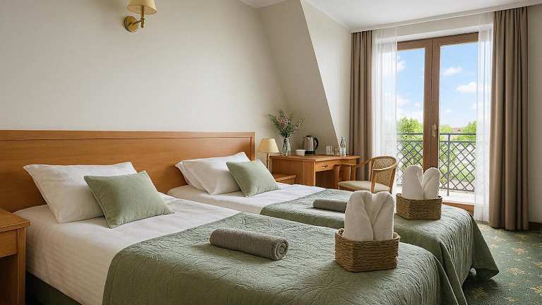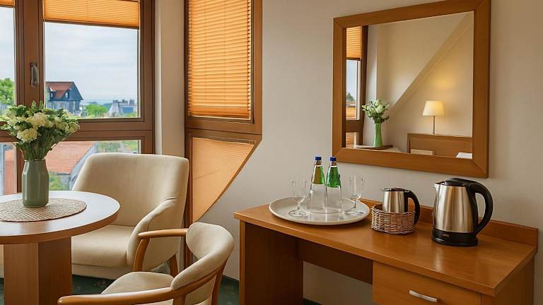 Das Hotel Chaton in Mielno an der Ostsee bietet eine ideale Lage direkt an der Strandpromenade, nur 40 m vom Strand entfernt. Die Zimmer sind modern und komfortabel eingerichtet und verfügen über einen möblierten Balkon mit Meerblick. Entspannen Sie sich in der Wellnessdusche mit Wassermassage und Radio oder genießen Sie die freie Nutzung von Nordic-Walking-Stöcken und Strandzubehör. Kostenloses WLAN steht Ihnen in der Sommersaison zur Verfügung.