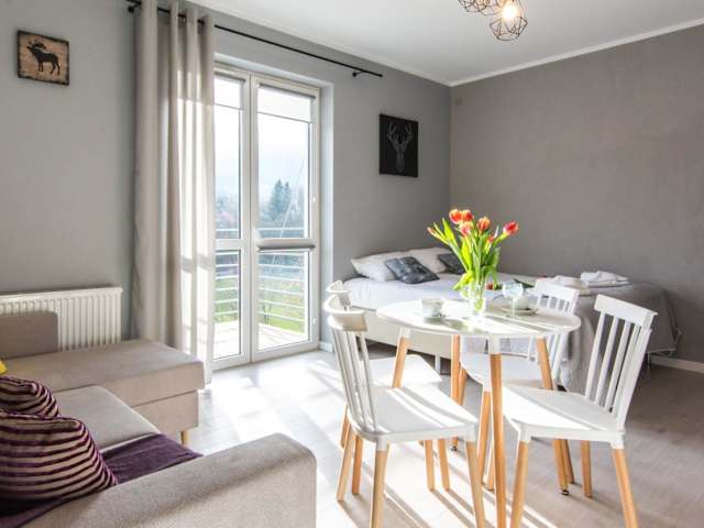 Das Apartamenty Izerskie - ul. Cicha 13F-G in Świeradów-Zdrój bietet komfortable Unterkünfte mit kostenfreiem WLAN und kostenfreien Privatparkplätzen. Genießen Sie den Balkon mit Bergblick, den gemütlichen Sitzbereich und den Flachbild-TV. Die voll ausgestattete Küchenzeile mit Kühlschrank und Geschirrspüler ermöglicht es Ihnen, Ihre eigenen Mahlzeiten zuzubereiten. Das Aparthotel liegt in der Nähe von Skigebieten und bietet eine Skiaufbewahrung. Entdecken Sie die Umgebung beim Skifahren oder besuchen Sie die nahegelegenen Sehenswürdigkeiten.