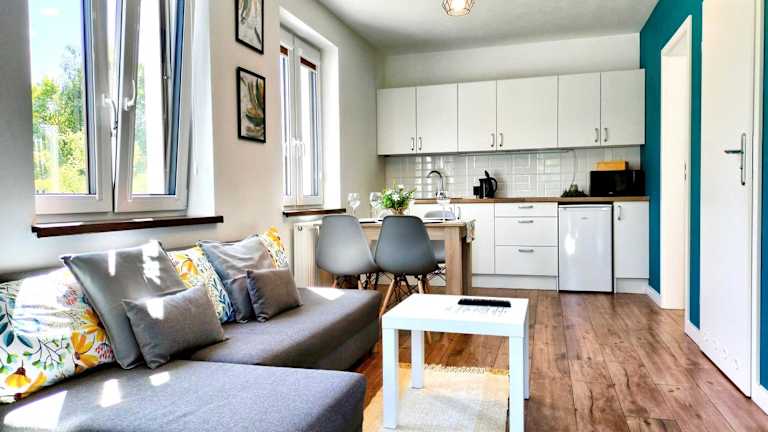 Das Apartamenty Jodłowa befindet sich in Krajno-Zagórze, nur 16 km vom beeindruckenden Nationalpark Świętokrzyski entfernt. Von hier aus haben Sie einen wunderschönen Blick auf die umliegenden Berge. In der Nähe gibt es zahlreiche Möglichkeiten für Outdoor-Aktivitäten wie Wandern, Skifahren und Angeln. Die Raj-Höhle und der Palast der Bischöfe von Krakau sind ebenfalls einen Besuch wert und bequem zu erreichen. Der Flughafen Radom-Sadkow liegt etwa 78 km entfernt.