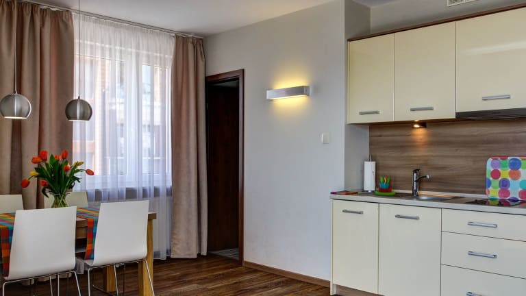 Die Apartments im Marina Jastarnia Apartamenty bieten Ihnen ein komfortables Wohnzimmer mit Sofas und einem Flachbildfernseher. Die Küchenzeile ist mit einem Herd, Küchenutensilien und einem Wasserkocher ausgestattet, so dass Sie Ihre eigenen Mahlzeiten zubereiten können. Von den Apartments aus haben Sie einen Blick auf die Bucht und den Hafen. Kostenloses WLAN ist ebenfalls verfügbar.