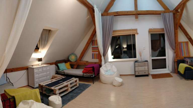 Das Apartamenty na wsi Horses&Relax befindet sich in Młynary, in der Region Ermland-Masuren. Es liegt etwa 32 km vom Elbląg-Kanal entfernt, einer beliebten Touristenattraktion. Die Umgebung bietet zahlreiche Möglichkeiten für Outdoor-Aktivitäten wie Angeln und Wandern. Der Drużno-See ist etwa 38 km entfernt und lädt zu entspannten Stunden am Wasser ein. Der Bahnhof Elbląg ist nur 29 km entfernt und bietet eine gute Anbindung an die umliegenden Städte. Der Flughafen Lech-Wałęsa in Danzig ist mit einer Entfernung von 102 km gut erreichbar.