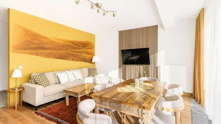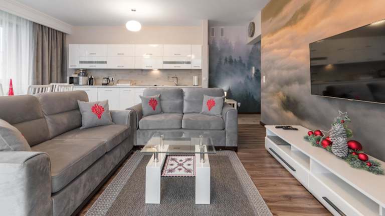 Die Apartments im Apartamenty Oaza B0 Zakopane bieten geräumige Wohnzimmer mit Flachbild-TV, die zum Entspannen einladen. Ein Balkon bietet Ihnen die Möglichkeit, frische Luft zu genießen und die Aussicht zu bewundern. Die Apartments verfügen über ein separates Schlafzimmer und eine Skiaufbewahrung, um Ihre Ausrüstung sicher aufzubewahren. In der Küchenzeile mit Kochfeld, Toaster und Mikrowelle haben Sie die Möglichkeit, Ihre eigenen Mahlzeiten zuzubereiten. Küchenutensilien und ein Wasserkocher sind ebenfalls vorhanden.