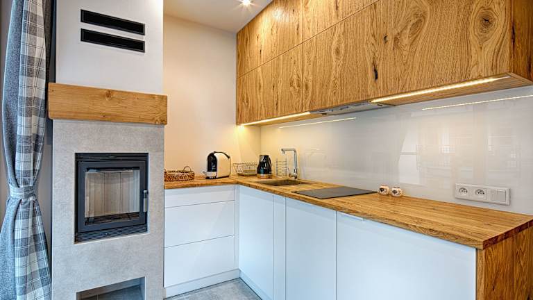 In der Unterkunft wird ein kontinentales Frühstück angeboten. Die Küchenzeile der Apartments ist mit einem Kühlschrank, Geschirrspüler, Mikrowelle, Herdplatte und Wasserkocher ausgestattet, sodass die Gäste die Möglichkeit haben, sich selbst zu versorgen.