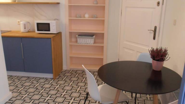 Das Apartment auf der 3. Etage des Apartamenty Rudi ist gemütlich eingerichtet und verfügt über kostenfreies WLAN. Die Küche ist mit einer Mikrowelle ausgestattet, so dass Sie bequem Ihre eigenen Mahlzeiten zubereiten können. Handtücher und Bettwäsche werden zur Selbstverpflegung gestellt, so dass Sie sich wie zu Hause fühlen können.