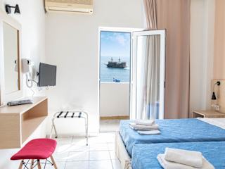 Das Achilleas Hotel liegt in einer erstklassigen Lage in Kos-Stadt. Der Strand ist nur 50 m entfernt und das Zentrum von Kos-Stadt erreichen Sie nach nur 200 m. In der Umgebung finden Sie eine Vielzahl von Restaurants, Geschäften und Unterhaltungsmöglichkeiten. Der Flughafen Kos ist nur 23 km entfernt. Eine Bushaltestelle, ein Taxistand, ein Wäscheservice und 2 Minimärkte befinden sich ebenfalls in unmittelbarer Nähe des Hotels.