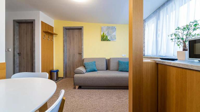 Die Apartments im Aparthotel Belveder wurden 2014 renoviert und bieten modernen Komfort. Jedes Apartment verfügt über einen Flachbild-Sat-TV, ein Schlafsofa, einen gemütlichen Sitzbereich, eine praktische Küchenzeile und ein eigenes Badezimmer mit Dusche. WLAN steht Ihnen in allen Bereichen kostenfrei zur Verfügung.