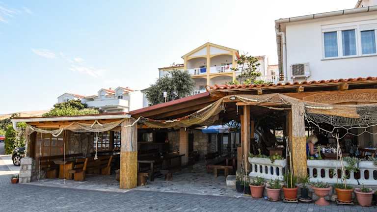 Im Restaurant des Guest House Frane können Sie regionale Spezialitäten wie den berühmten Pag-Käse, Lammfleisch und verschiedene Fischgerichte genießen. Die Terrasse bietet einen atemberaubenden Blick auf die Adria und ist der perfekte Ort, um Ihre Mahlzeiten zu genießen. An der Bar können Sie regionale und internationale Getränke bestellen und den Abend ausklingen lassen.