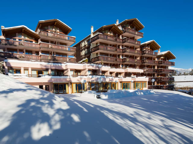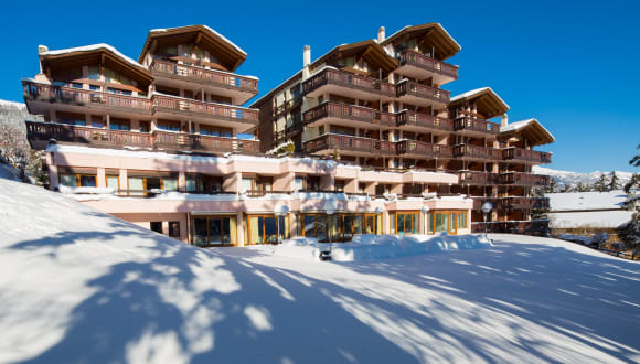 Das Hotel Helvetia Intergolf in Crans-Montana bietet seinen Gästen eine ruhige und dennoch zentrale Lage. Von hier aus können Sie die beeindruckende Aussicht auf die Walliser Alpen genießen. Das Hotel verfügt über geräumige Zimmer mit Balkon und Panoramablick, einen Wellnessbereich mit Innenpool und verschiedene gastronomische Einrichtungen. Der kostenlose Shuttleservice zum Skigebiet und der kostenfreie Parkplatz runden das Angebot ab.