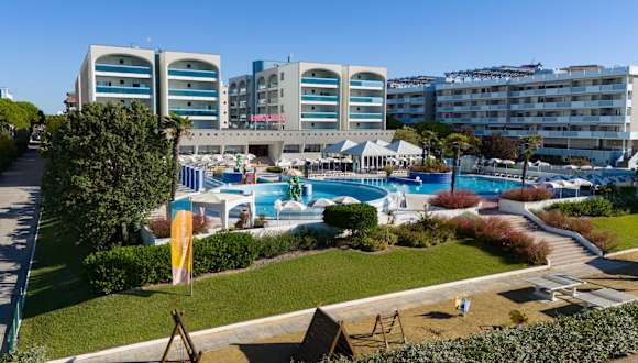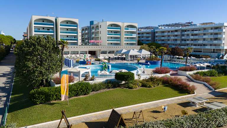 Das Aparthotel Imperial ist die perfekte Wahl für einen Familienurlaub in Bibione – direkt am Meer gelegen, nur durch die Strandpromenade vom Privatstrand getrennt, und nur wenige Schritte vom renommierten Thermalzentrum Bibione Thermae entfernt. Die großzügige Anlage besteht aus drei Gebäuden mit insgesamt 120 vollklimatisierten Apartments, verteilt auf sechs Etagen mit Aufzügen – auch für Rollstuhlfahrer zugänglich. Jedes Apartment verfügt über einen eigenen Parkplatz sowie einen reservierten Platz am Strand mit Sonnenschirm und Liegen. Das Aparthotel kombiniert die Freiheit einer Ferienwohnung mit dem Komfort eines Hotels. Zu den zahlreichen Annehmlichkeiten zählen kostenloses WLAN im gesamten Komplex, ein Buffet-Restaurant mit abwechslungsreichen Menüs für Kinder, Vegetarier und Gäste mit Lebensmittelunverträglichkeiten, ein Babyspeiseservice sowie eine praktische Münzwäscherei. Ein echtes Highlight für Familien ist das umfangreiche Animationsprogramm mit Mini- und Juniorclub, Babybereich (0–2 Jahre) sowie drei großzügige Außenpools mit Whirlpool-Zonen, Wasserspielen und ausreichend Platz zum Entspannen. Wer gerne aktiv ist, kann die kostenfreien Fahrräder (inklusive Kindersitze und Helme) nutzen, um die vielen Radwege entlang des Strandes oder durch die Naturgebiete von Bibione zu erkunden. Ob Sonne, Spaß, gutes Essen oder erholsame Momente – im Aparthotel Imperial genießen Sie das Beste aus zwei Welten: freie Urlaubsplanung und Hotelkomfort in Top-Lage direkt am Meer.
