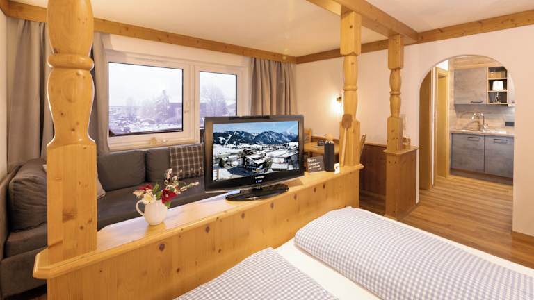 Die Käserstube Ferienwohnungen bieten 14 geräumige Apartments, die im typisch alpenländischen Stil eingerichtet sind. Jedes Apartment verfügt über ein eigenes Bad und Sat-TV. Die meisten Apartments bieten zudem einen Balkon oder eine Terrasse, auf denen Sie die frische Bergluft und die wunderschöne Aussicht genießen können. Die Apartments sind mit einer Küchenzeile ausgestattet, die Ihnen die Möglichkeit zur Selbstverpflegung bietet. Darüber hinaus steht Ihnen ein Kühlschrank zur Verfügung, um Ihre Lebensmittel frisch zu halten.