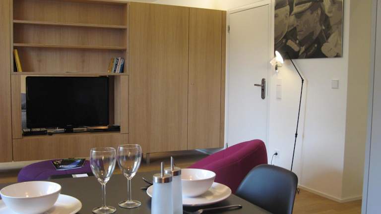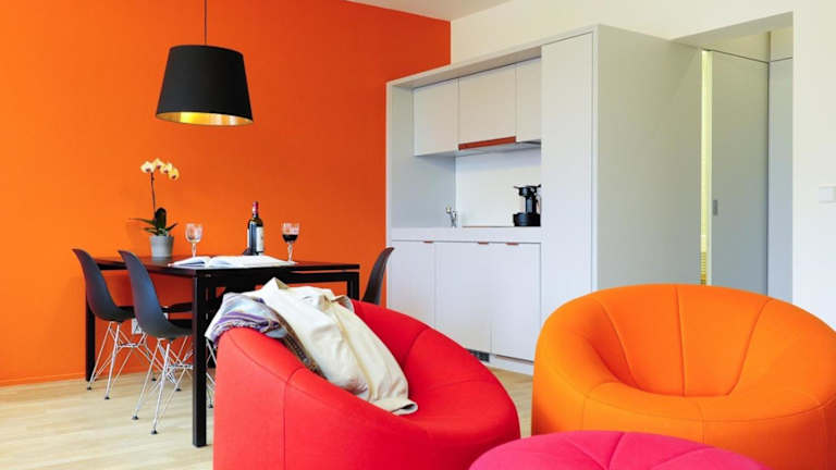 Die Studios im Key Inn Appart Hotel Parc de Merl sind schallisoliert und verfügen über eine moderne Einrichtung. Jedes Studio bietet eine voll ausgestattete Küchenzeile, in der Sie Ihre eigenen Mahlzeiten zubereiten können. Entspannen Sie sich in einem gemütlichen Wohnbereich mit bunten Stühlen und einem Flachbild-Sat-TV mit DVD-Player. Ein Schreibtisch und ein Essbereich sind ebenfalls vorhanden. Das Badezimmer ist mit einer Dusche ausgestattet und die Küche bietet ein Kochfeld, einen Kühlschrank und Küchenutensilien.