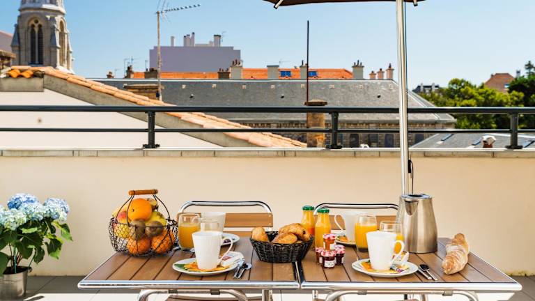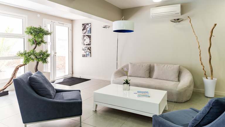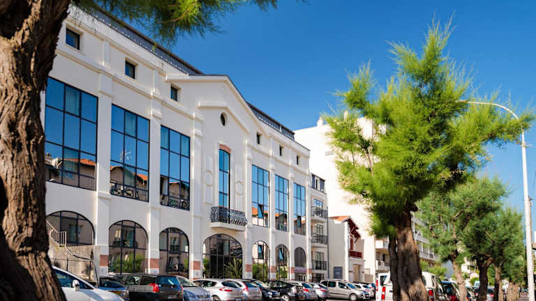 Verbringen Sie einen stilvollen Urlaub im Aparthotel Lagrange Vacances Les Patios Eugénie in Biarritz, nur wenige Gehminuten von den Sandstränden entfernt. Genießen Sie den beheizten Außenpool und entspannen Sie in modernen Ferienwohnungen und Studios mit allen Annehmlichkeiten. Nutzen Sie die zusätzlichen Einrichtungen wie Sauna, Hamam und Whirlpool gegen Aufpreis. Die Unterkunft bietet auch Parkplätze in der Tiefgarage an und ist günstig gelegen, um Biarritz und Anglet zu erkunden und Surfmöglichkeiten zu nutzen.