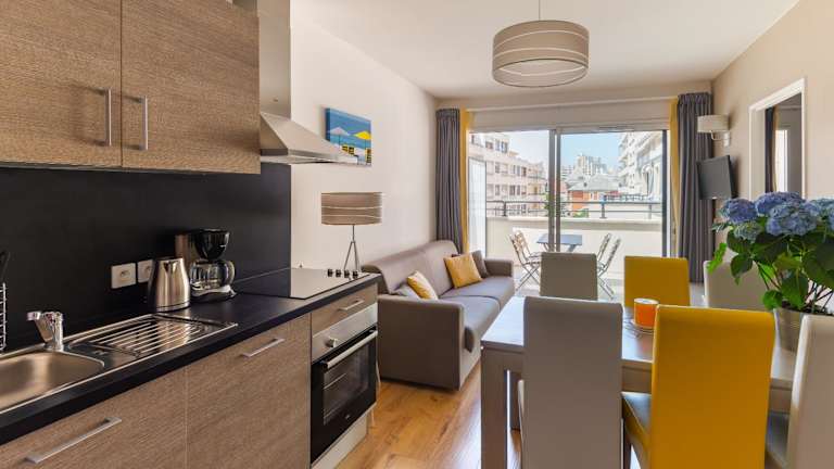 Die Ferienwohnungen und Studios im Lagrange Vacances Les Patios Eugénie sind modern und komfortabel eingerichtet. Jede Unterkunft verfügt über einen TV und die Küchenzeilen sind mit einem Herd, einer Mikrowelle und einer Spülmaschine ausgestattet. Bettwäsche und Handtücher werden gestellt, um Ihnen einen angenehmen Aufenthalt zu ermöglichen. Die meisten Ferienwohnungen bieten zudem einen möblierten Balkon oder eine Terrasse, damit Sie die frische Luft und die Aussicht genießen können.