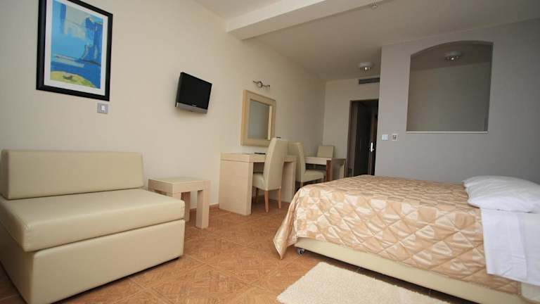 In der Umgebung des Aparthotel Natalia Podgora gibt es zahlreiche Möglichkeiten für Sport- und Freizeitaktivitäten. Entspannen Sie am Strand, erkunden Sie die umliegende Natur oder machen Sie einen Ausflug zum Blauen See. Das Hotel bietet zudem eine Terrasse und eine Bar, wo Sie sich entspannen und den Blick auf die Umgebung genießen können.