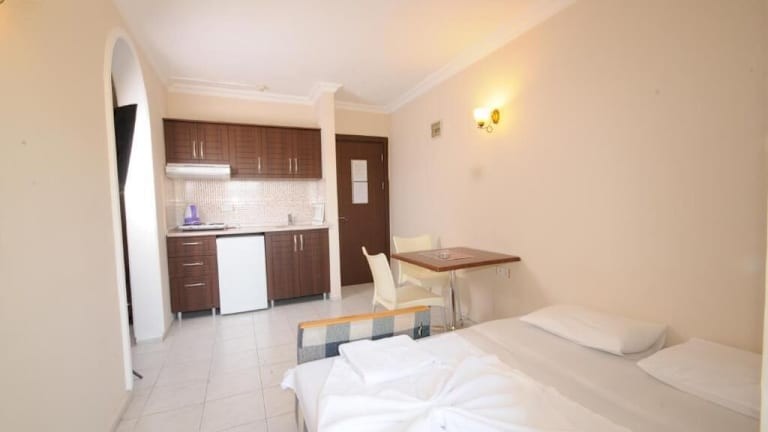Verbringen Sie Ihren Urlaub im Ozturk Apart Hotel und genießen Sie die Nähe zum Mittelmeer. Das Hotel bietet einen Außenpool, einen schönen Palmengarten und eine 24-Stunden-Rezeption. Die klimatisierten Apartments sind mit allen Annehmlichkeiten wie einer Küche und einem eigenen Bad ausgestattet. Das Hotelrestaurant serviert lokale und internationale Küche, während die Poolbar erfrischende Cocktails anbietet. Kinder können sich über einen eigenen Pool und einen Spielplatz freuen. Der Flughafen Dalaman ist 95 km entfernt und ein Shuttleservice kann gegen Aufpreis arrangiert werden.