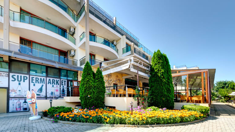 Das Aparthotel Prestige City II in Primorsko bietet seinen Gästen einen erholsamen Aufenthalt direkt am Meer. Die Apartments sind klimatisiert und bieten einen atemberaubenden Panoramablick auf das Meer. Entspannen Sie am Außenpool oder lassen Sie sich im Wellnesszentrum verwöhnen. Das Hotel verfügt über einen 24-Stunden-Sicherheitsdienst und eine 24-Stunden-Rezeption. Das Restaurant mit großzügiger Terrasse am Pool verwöhnt Sie mit köstlichen Gerichten.