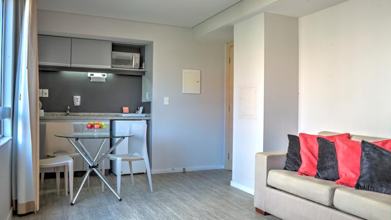 Das Regency Rambla Design Apart Hotel in Montevideo bietet brandneue Apartments mit herrlichem Blick auf den Rio de la Plata. Hier können Sie sich auf einen erholsamen Aufenthalt mit einem Pool, einer Sonnenterrasse, kostenlosem WLAN und einem köstlichen kontinentalen Frühstück freuen. Die geräumigen Apartments verfügen über einen Balkon mit Fluss- oder Gartenblick, einen großzügigen Sitzbereich und einen modernen Schreibtisch. Die Küchenzeile ist mit einer Mikrowelle und einer Minibar ausgestattet. Das Hotel bietet zudem einen Fahrradverleih und organisiert gerne Transfers zum nahegelegenen Flughafen Montevideo. Die Innenstadt von Montevideo erreichen Sie mit dem Auto in nur 15 Minuten.