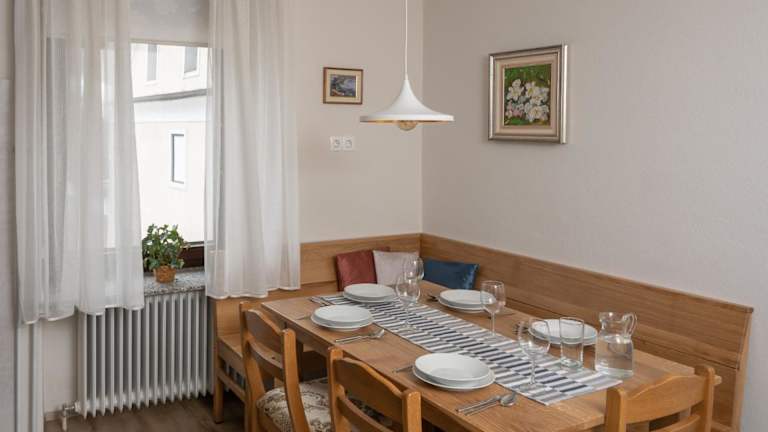 Die Ferienwohnung verfügt über 2 Schlafzimmer, 1 Badezimmer, Bettwäsche und Handtücher. Zur Ausstattung gehören ein Flachbild-TV mit Satellitenkanälen, ein Essbereich, eine voll ausgestattete Küche und eine Terrasse mit Gartenblick.