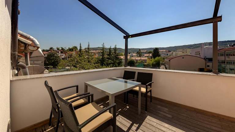 Die Unterkunft befindet sich in der Nähe des Strandes Delfin, nur etwa 1 km entfernt, und bietet einen Stadtblick. Der Strand Plaža Svetilnik liegt 800 m entfernt, und der Strand Simonov Zaliv ist 1,5 km von der Unterkunft entfernt. Die Burg Castello di San Giusto ist in einer Entfernung von 26 km zu finden.