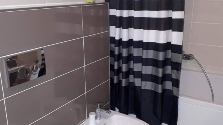 Die Ferienwohnung umfasst 1 Schlafzimmer, ein Wohnzimmer sowie eine voll ausgestattete Küche mit Kühlschrank und Wasserkocher. Ein Badezimmer mit Bidet und Dusche ist ebenfalls vorhanden. Handtücher und Bettwäsche werden bereitgestellt.