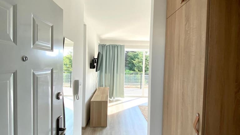 Das Apartment im Apartman 001 bietet einen komfortablen Aufenthalt mit einem Schlafzimmer, einem Wohnzimmer und einer gut ausgestatteten Küchenzeile. Die Terrasse bietet einen schönen Blick auf den Garten und lädt zum Entspannen ein. Zur Ausstattung gehören auch ein Flachbild-TV, Handtücher und Bettwäsche.