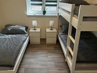 Die Ferienwohnung besteht aus zwei Schlafzimmern, einem Wohnzimmer und einer voll ausgestatteten Küche, die mit einem Kühlschrank und einer Kaffeemaschine versehen ist. Zudem gibt es ein Badezimmer mit Dusche. Handtücher und Bettwäsche werden zur Verfügung gestellt.