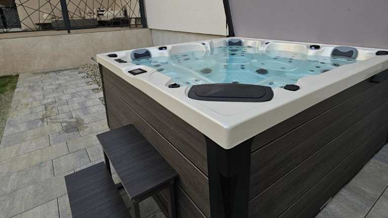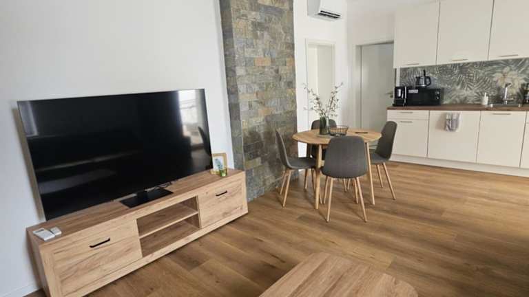 Die Ferienwohnung bietet Platz für bis zu vier Personen und besteht aus zwei Schlafzimmern, einem Wohnzimmer sowie einer vollständig ausgestatteten Küche mit Kühlschrank und Kaffeemaschine. Es sind zwei Badezimmer vorhanden, eines davon mit Dusche und dem anderen mit einem Whirlpool. Ausstattung wie Klimaanlage, Schallisolierung, kostenfreies WLAN und bereitgestellte Bettwäsche sowie Handtücher sind vorhanden.