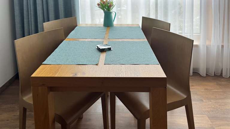 Die Ferienwohnung umfasst ein Schlafzimmer, ein Wohnzimmer und eine voll ausgestattete Küchenzeile, die mit einem Kühlschrank und einer Kaffeemaschine ausgestattet ist. Des Weiteren gibt es ein Badezimmer mit einer Dusche. Handtücher und Bettwäsche werden zur Verfügung gestellt.