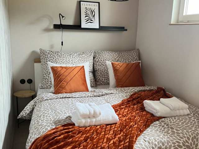 Die Ferienwohnung verfügt über 1 Schlafzimmer, ein Wohnzimmer sowie eine voll ausgestattete Küchenzeile mit Kühlschrank und Kaffeemaschine. Zudem gibt es ein Badezimmer mit Dusche. Handtücher und Bettwäsche sind in der Ferienwohnung ebenfalls vorhanden.