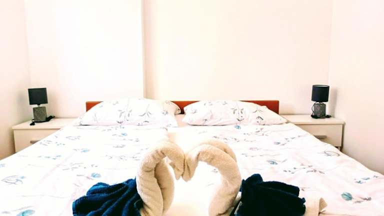 Die Ferienwohnung umfasst ein Schlafzimmer, ein Wohnzimmer sowie eine voll ausgestattete Küche mit Kühlschrank und Kaffeemaschine. Des Weiteren ist ein Badezimmer mit Dusche und kostenlosen Pflegeprodukten vorhanden. Handtücher und Bettwäsche werden bereitgestellt.