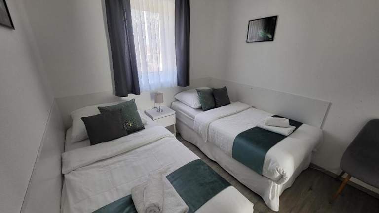 Die Ferienwohnung besteht aus 2 Schlafzimmern, einem Wohnzimmer und einer voll ausgestatteten Küche mit Kühlschrank und Wasserkocher. Ein Badezimmer mit Dusche und kostenlosen Pflegeprodukten ist ebenfalls vorhanden. Handtücher und Bettwäsche werden bereitgestellt.