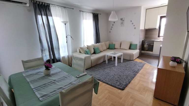 Das klimatisierte Apartment im Apartman GANA Altina LUX verfügt über einen Balkon, der einen herrlichen Blick auf die Stadt bietet. Es gibt 2 Schlafzimmer, ein gemütliches Wohnzimmer und eine voll ausgestattete Küche mit Kühlschrank und Geschirrspüler. Das Apartment bietet Platz für bis zu 4 Personen und verfügt über ein Badezimmer mit Dusche. Handtücher und Bettwäsche werden gestellt, um Ihnen einen angenehmen Aufenthalt zu ermöglichen.