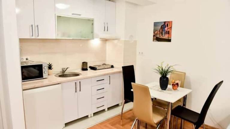 Im Apartman Garden können Sie Ihre Mahlzeiten selbst zubereiten und sich wie zu Hause fühlen. Die voll ausgestattete Küche bietet Ihnen alle notwendigen Utensilien und Geräte, um Ihre Lieblingsspeisen zuzubereiten. Alternativ können Sie auch in den nahegelegenen Restaurants speisen und die lokale Küche probieren.