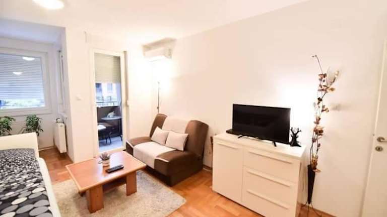 Das klimatisierte Apartment im Apartman Garden ist gemütlich und komfortabel eingerichtet. Es verfügt über ein separates Schlafzimmer, in dem Sie sich nach einem ereignisreichen Tag entspannen können. Die voll ausgestattete Küche bietet Ihnen die Möglichkeit, Ihre eigenen Mahlzeiten zuzubereiten und den Komfort von zu Hause zu genießen. Ein Balkon und eine Terrasse bieten Ihnen die Möglichkeit, die frische Luft und die schöne Aussicht zu genießen. Ein Flachbild-TV sorgt für Unterhaltungsmöglichkeiten im Apartment.