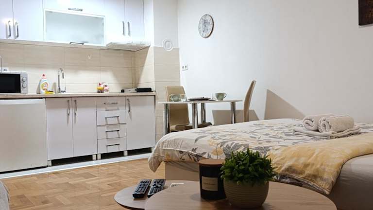 Das Apartman Garden in Banja Luka bietet komfortable Unterkünfte mit einem Balkon und einer voll ausgestatteten Küche. Das klimatisierte Apartment verfügt über ein separates Schlafzimmer und eine Terrasse. Die Lage ist ideal, da die Festung Kastel nur 1,7 km entfernt ist. Der internationale Flughafen Banja Luka ist ebenfalls leicht zu erreichen, da er nur 24 km entfernt liegt.