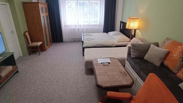 Das Apartmán Horní Slavkov Hodinářství befindet sich in Horní Slavkov und bietet eine gute Ausgangslage, um die Umgebung zu erkunden. Die Mühlenkolonnade und die Marktkolonnade sind nur 23 km entfernt und laden zu einem Besuch ein. Der internationale Flughafen Karlsbad liegt nur 15 km von der Unterkunft entfernt, sodass Sie bequem an- und abreisen können.